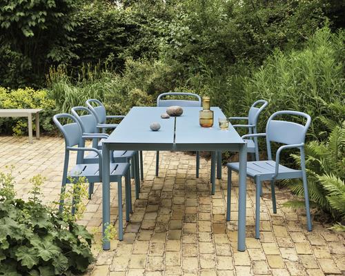 The Linear Steel Table brings new perspectives to modern outdoor furniture through its straight lines alongside the folded edges, halfcircular intersecting legs and small spacing for easy removal of water. Kept visually clean for long-lasting aesthetics, the Linear Steel Table finds its distinct character through subtle detailing and a simple expression, allowing for it to complement any outdoor setting. Pair the table with the Linear Steel Bench, designed in proportions that allow for it to slide easily under the table.