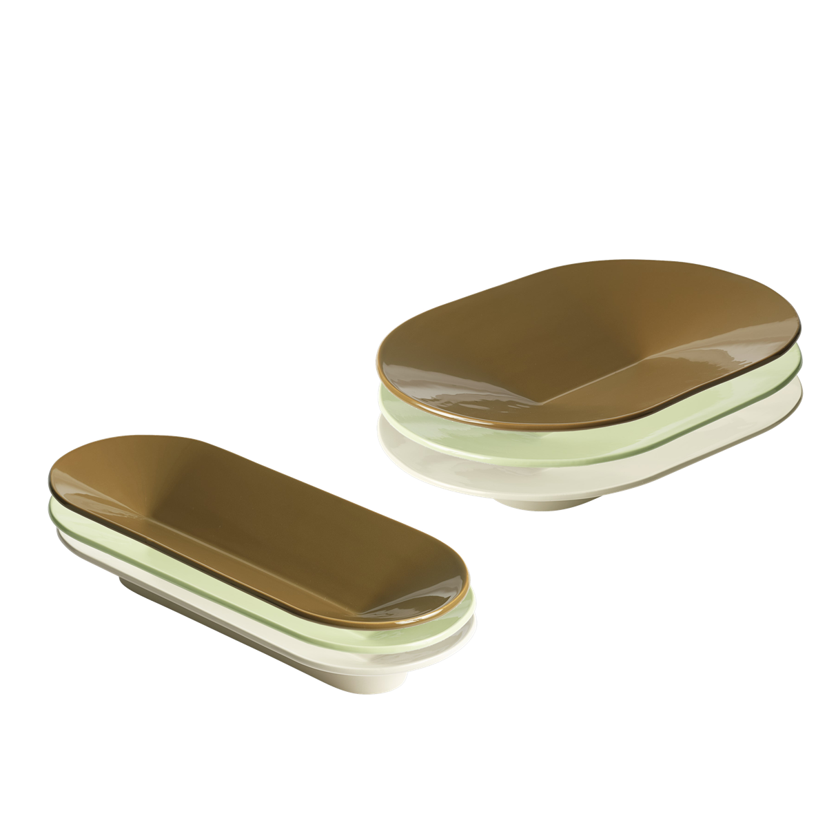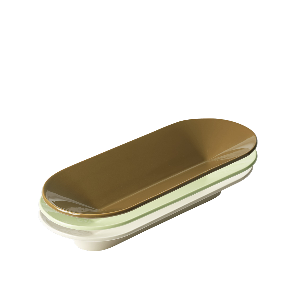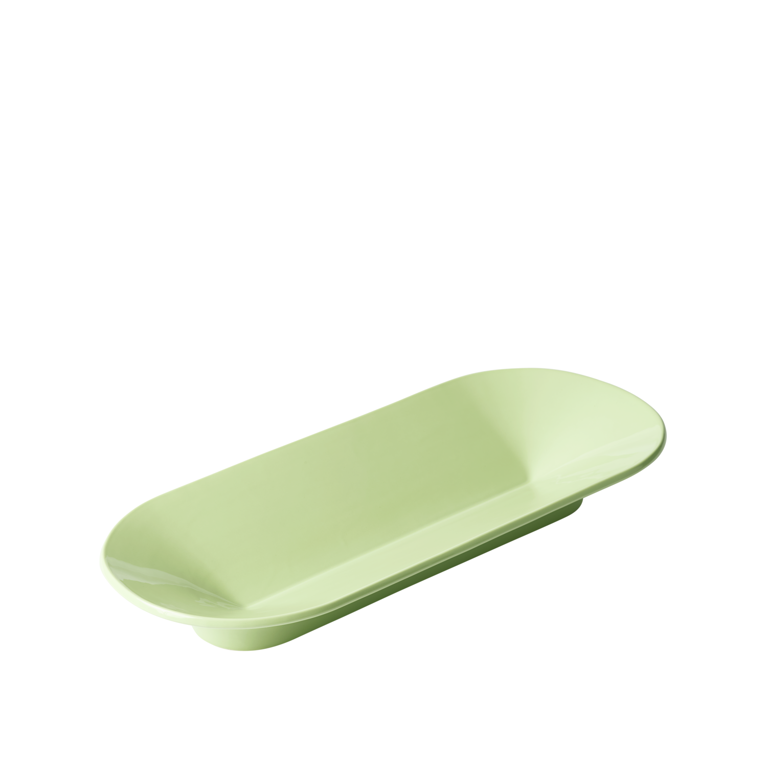 The Mere Bowl is a sculptural centerpiece, one that looks beautiful in a tablescape or space whether it is in use or not. Its characteristic shape is simple yet ingenious, as a line down its middle folds out to the sides forming a bowl. Elevated by a discrete foot, it looks as if floating. Manufactured in tactile ceramic stoneware, it has been coated in a high-gloss glaze that enhances the shadows that form along Mere Bowl’s fold. This surface treatment makes the bowl food safe.